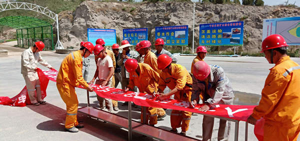 啟動儀式上,分公司經理李文軍首先強調了舉行“安全生產月”活動重要意義,然后由專職安全員張忠?guī)ьI參與人員進行了“安全生產月”宣誓;最后,全體人員在“防風險、除隱患、遏事故”的紅色橫幅上進行了安全承諾簽字。