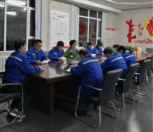 20191124日晚,舒蘭項目部組織開展學習十九屆四中全會精神主題日活動宋憲軍同志帶領項目部黨員和員工共同學習《中國共產黨第十九屆中央委員會第四次全體會議公報》。