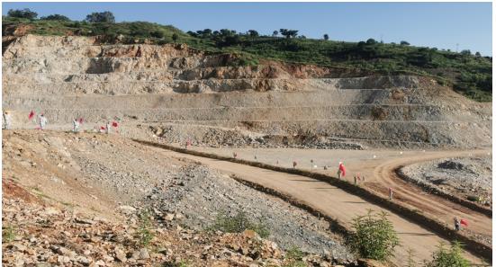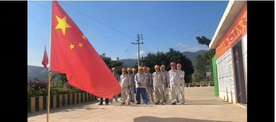唱完國歌,員工們在項目經理及各黨員的帶領下,每人領取了一面國旗和旗桿,興致勃勃的向礦區走去。